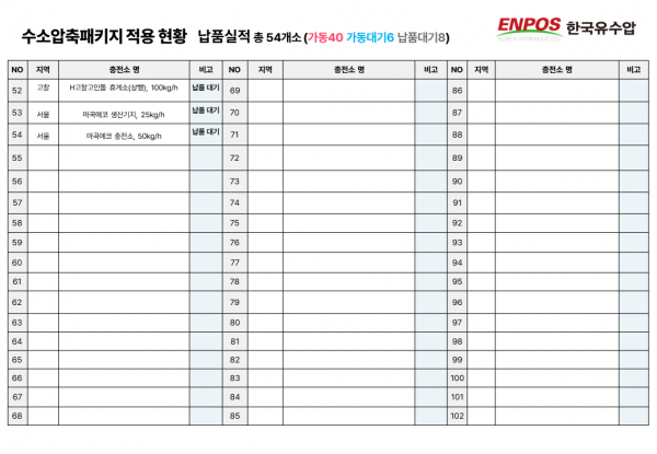 수소압축패키지 국내 적용 현황 (2025년 5월 기준) 페이지 정보 글쓴이 ENPOS 작성일21-08-20 11:34 조회4,692 댓글0 관련링크 https://blog.naver.com/enpos_korea/223326103819 896회 연결 Prev Next 목록 본문 2025년 5월 기준 당사 수소압축패키지 국내 적용 현황 입니다. 참고바랍니다. *클릭 시 이미지가 확대됩니다. Prev Next 목록